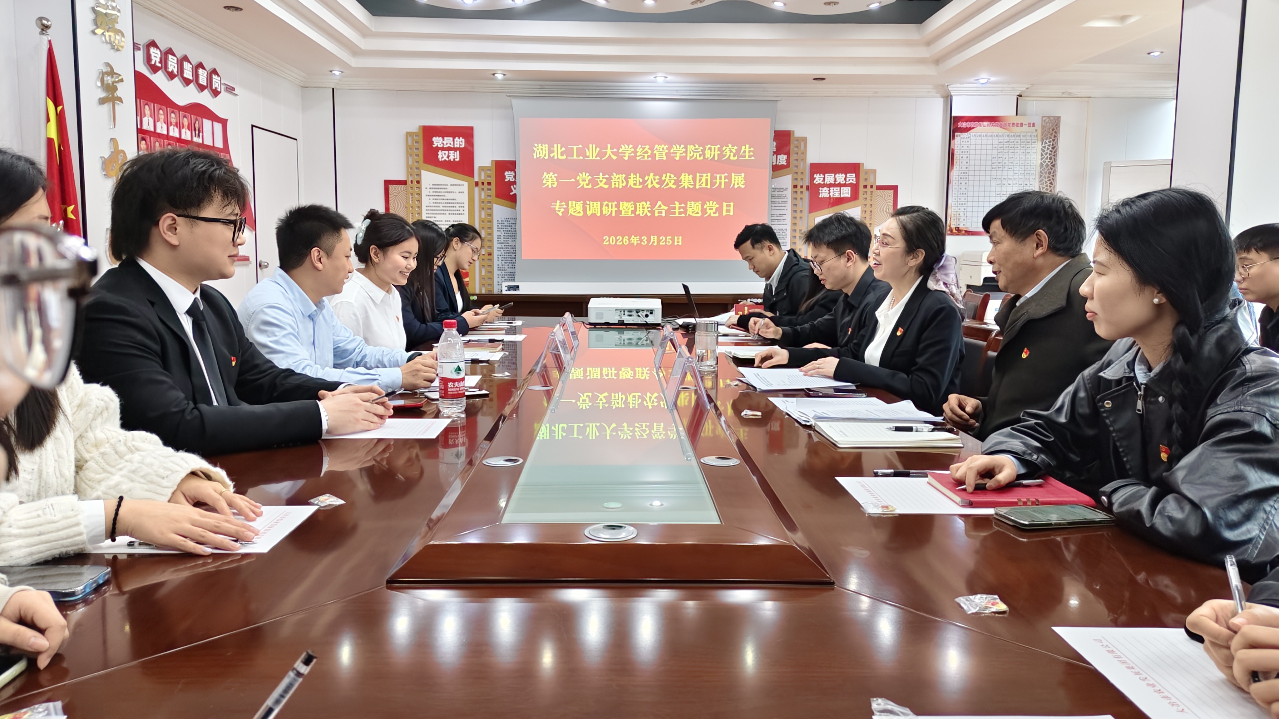 为深化党建引领校企协同育人,推动高校科研优势与地方农业产业深度融合,助力乡村全面振兴,3月25日,经管学院研究生第一党支部赴大冶市农业发展集团有限公司,开展“产教融合助振兴,党建共建促发展”联合主题党日暨专题调研活动。学院院长助理张燕华副教授带领支部党员参与活动,大冶农发集团党委副书记饶文芳、机关支部书记占明秋等相关负责人陪同交流。