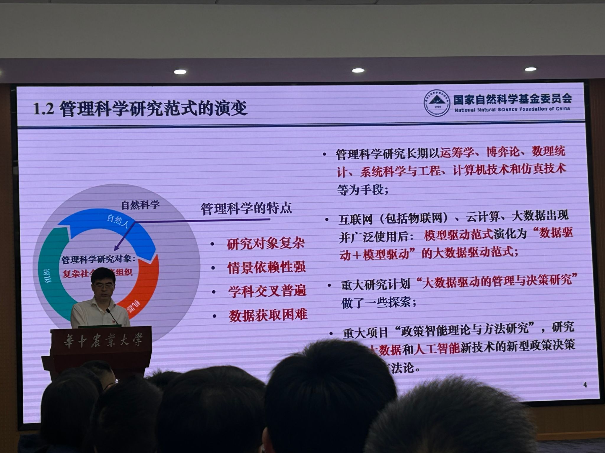 国家自然科学基金委管理科学部吴刚副主任就管理科学研究范式的演变、学科发展现状和面临的挑战、青年科学基金项目资助情况以及科学基金改革情况等进行了介绍,并基于国家重大需求,给出管理科学部近期资助的方向。