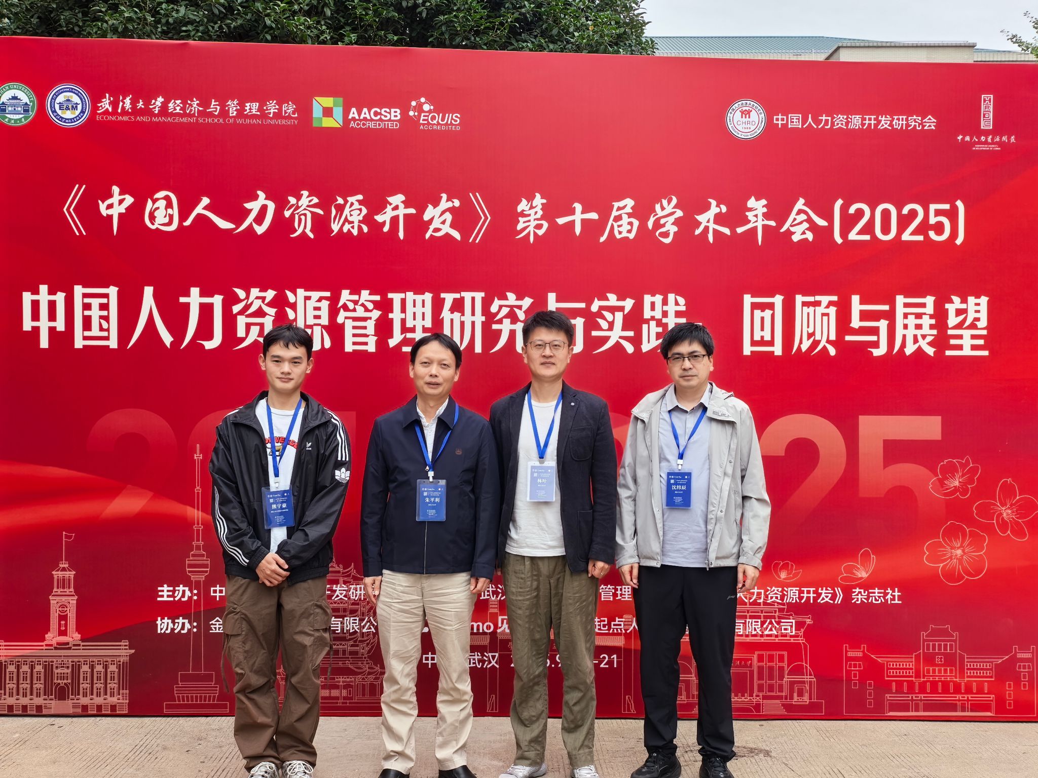 2025年9月19日至21日,《中国人力资源开发》第十届学术年会在武汉大学顺利召开。本次年会由中国人力资源开发研究会、《中国人力资源开发》杂志社与武汉大学经济与管理学院联合主办,年会以“中国人力资源管理研究与实践:回顾与展望”为主题。会议吸引了全国近200所高校和科研机构的700余名学者及师生参加。学院教师代表朱平利、林叶、沈纬辰和研究生熊宇豪同学参与了此次学术盛会。会议期间,学者们围绕数智时代的人力资源管理展开深入探讨,主题报告精彩纷呈。