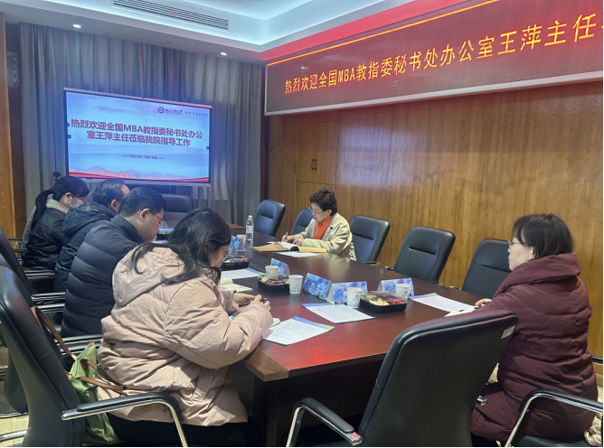 12月16日,全国MBA教指委秘书处办公室王萍主任应邀到经济与管理学院指导MBA项目发展建设工作,院长孙浩、副院长王利军、专业学位中心和MBA相关负责人参加座谈会,会议由孙浩主持。