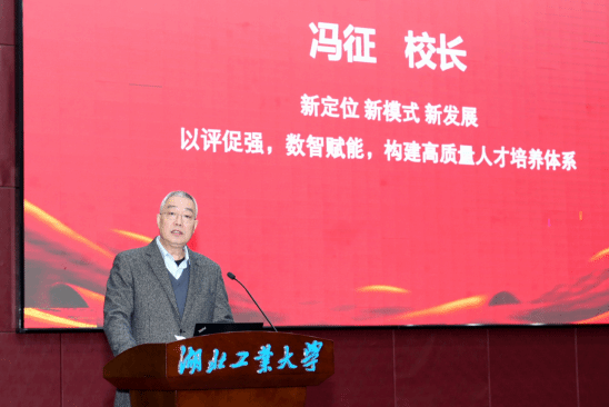 会上,冯征作了题为“新定位 新模式 新发展 以评促强,数智赋能,构建高质量人才培养体系”的主题报告。他全面回顾总结了“十四五”以来学校在“大思政课”、一流专业与课程、教学研究改革、创新创业教育等九个方面取得的建设成效;充分肯定了学校基于OBE理念的专业认证与一流专业建设,基于“融创于教、融创于练、融创于赛、融创于业”的创新创业教育模式,基于短学期实践、产业学院的产教融合育人体系等方面积累的宝贵经验;深度分析了人才培养面临的形势和存在的问题,并对今后一段时期的工作作了部署。他指出,为适应国家科教兴国和创新驱动发展战略,争创一流大学建设,学校将人才培养总体目标定位从高素质应用型人才培养调整升级为高素质创新型人才培养,通过实施本科教育教学高质量行动计划,全面推进学校人才培养模式改革,坚持“五育并举”,以高质量发展为主线,以审核评估为契机,“六个融合”为路径,以数字化、智能化赋能教育教学改革,加快新工科新文科建设,提升国际化办学水平,形成教学质量持续改进机制及质量文化,构建高质量人才培养体系。他进一步强调,要转变思想观念,主动谋划、超前布局,以评促建,以评促强,扎实推进人才培养质量进入“全国百强”,彰显绿色工业特色及学校人才培养特色,实现人才培养高质量发展,努力培养造就一批又一批德才兼备的高素质创新型人才。