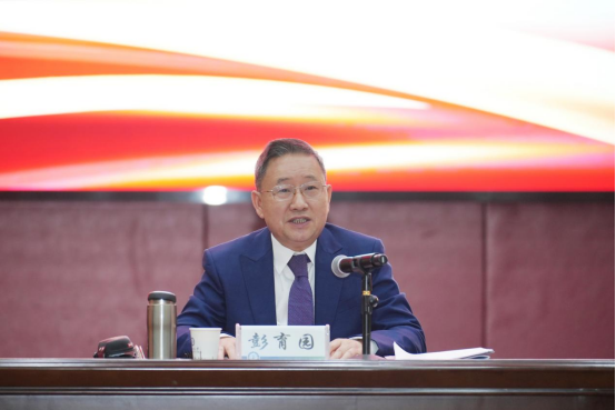 彭育园向受表彰集体和个人表示热烈祝贺,向辛勤耕耘在教育教学一线的全体教职员工致以衷心感谢,并以《向新而行,向质而兴,奋力谱写本科教育教学高质量发展新篇章》为题作总结讲话。他指出,本次会议既是对过去一年本科教学工作的全面总结与表彰,也是对审核评估“后半篇文章”的全面动员与部署,更是推进创新型人才培养的深度谋划,意义重大而深远。他表示,全校要深刻认识评估整改的战略意义,以“向新而行、向质而兴”为核心导向,积极响应国家发展新质生产力、建设教育强国的战略要求,落实教育部“以评促建,以评促强”核心要义,回答好“服务支点建设,湖工大何为?”的时代课题。